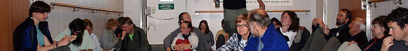 Před sedmou hodinou ranní nás budí hlášení lodního rozhlasu. Za hodinu budeme mezipřistávat v Tórshavnu. Jdu tedy na horní palubu zamávat Faerským ostrovům, nicméně venku panující slota mě rychle zahání do Viking Clubu, který je po ránu příjemně prázdný. Po dvouhodinové pauze v Tórshavnu se za stálého hustého deště vydáváme na další pouť po moři. Odpoledne nám zpestří poslední meeting, kde vyplňujeme dotazníky pro cestovku a dostáváme štamprdle Brennivínu, tedy tradičního a opravdu nedobrého islandského alkoholu. Večer si pak kratíme hrou karet a návštěvou Magic Show ve Viking Clubu. Ovšem triky kouzelníků jsou poněkud průhledné, jdeme si tedy ještě poslechnout klavíristu hrající v baru o poschodí níže a po půlnoci islandského, nyní tedy již po druhé hodině ranní našeho času jdeme spát.